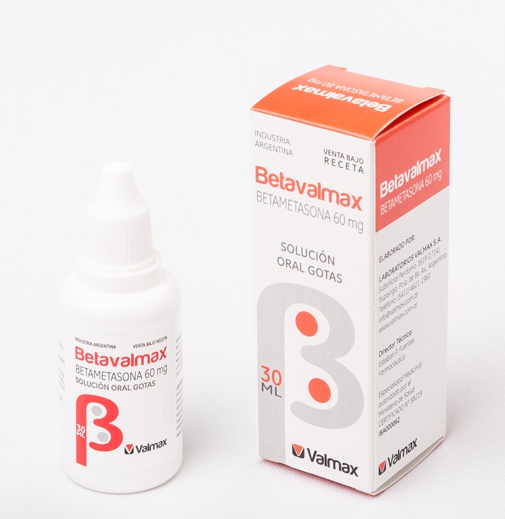 Betametasona cada 100ml de solución contiene 60mg. es un Corticoesteroide, se utiliza fundamentalmente, dados sus potentes efectos antiinflamatorios, en el tratamiento de diversas patologías. Venta bajo receta. Presentaciones de 30ml estuchada y  15ml  hospitalaria por 40unidades.