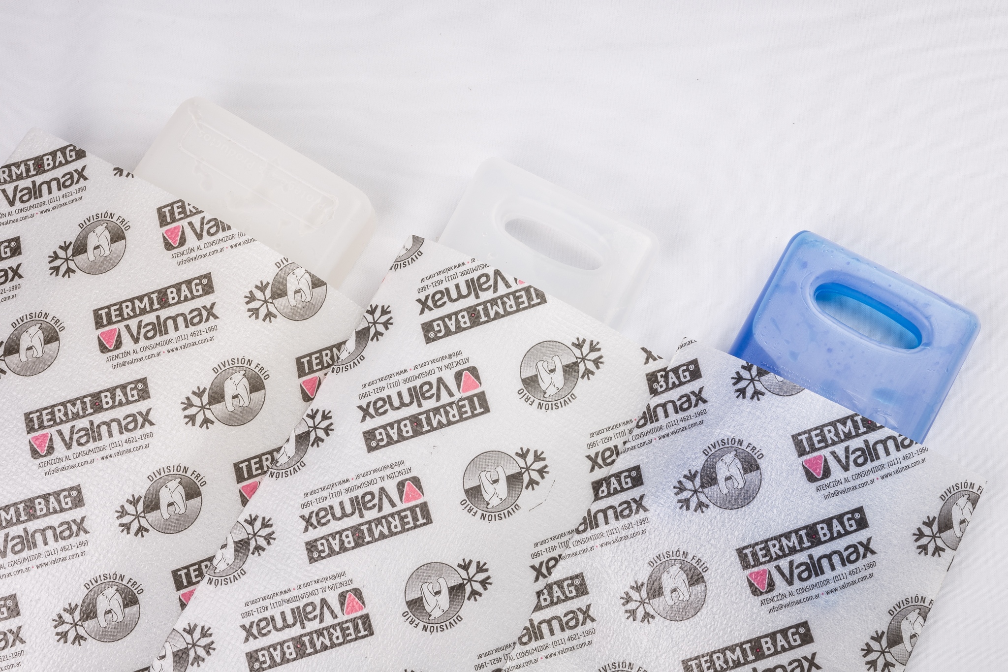 TERMI-BAG «La marca original de la Bolsa Térmica». El material Termi-Bag es un desarrollo original de VALMAX. Es una espuma de polietileno trilaminada, de notable flexibilidad, de característica aislante por la estructura interna de celda cerrada, equivalente a las propiedades del poliestireno expandido. En base a requerimientos específicos una de sus caras puede ser de material aluminizado, con la propiedad de reflejar más del 90% de la radiación (uno de los mecanísmos de la trasmisión de calor). En función a las cantidades hay posibilidad de incluir su logotipo en la impresión y se confeccionan bolsas con medidas especiales, según las necesidades del cliente.